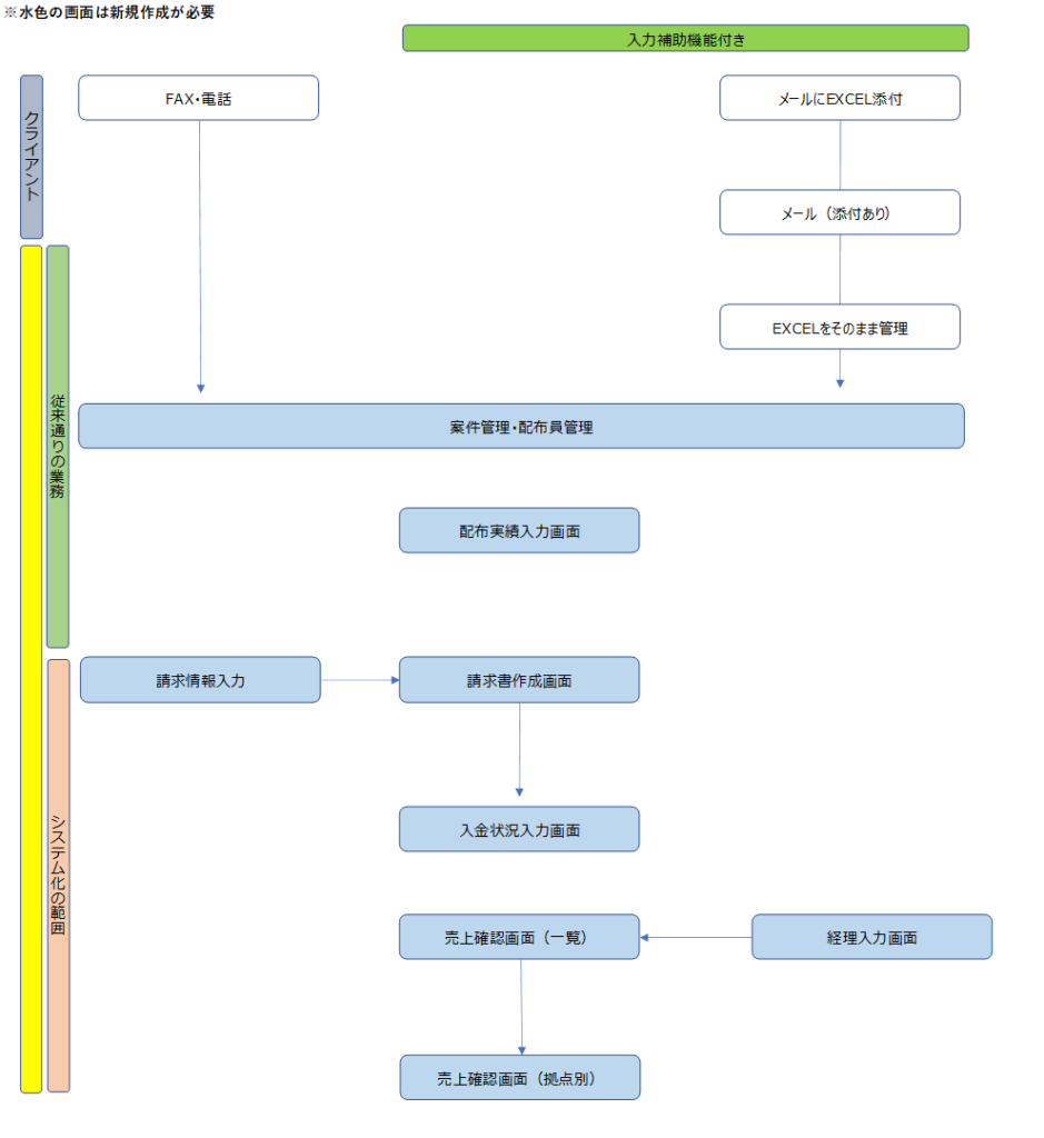 - 依頼書:配布員へ渡す依頼書をエクセルに出力する
